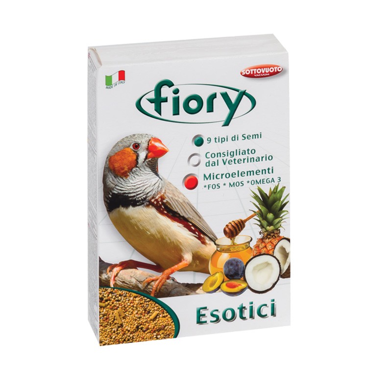 La miscela ESOTICI Fiory, come quella per canarini, è composta da diversi tipi di semi al fine di somministrare con essa