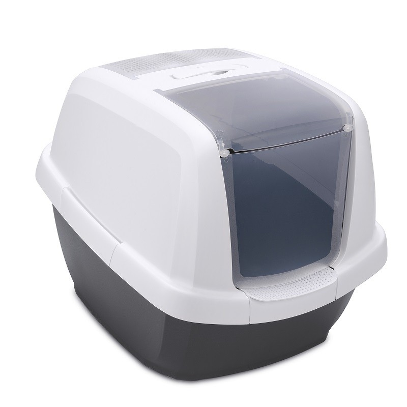 Lettiera maddy adatta anche a gatti di grossa taglia, portina ribaltabile per facilitare la pulizia interna, pedana di appoggio per agevolare l’entrata e l’uscita, filtro ai carboni
