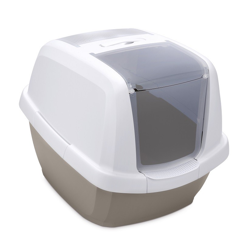 Lettiera maddy adatta anche a gatti di grossa taglia, portina ribaltabile per facilitare la pulizia interna, pedana di appoggio per agevolare l’entrata e l’uscita, filtro ai carboni
