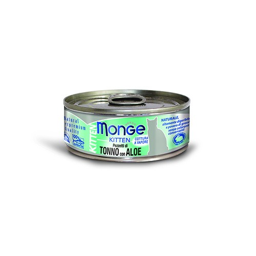 MONGE JELLY TONNO CON ALOE è un alimento complementare per gattini in fase di accrescimento, preparato con una deliziosa e delicata gelatina e cotto a vapore.