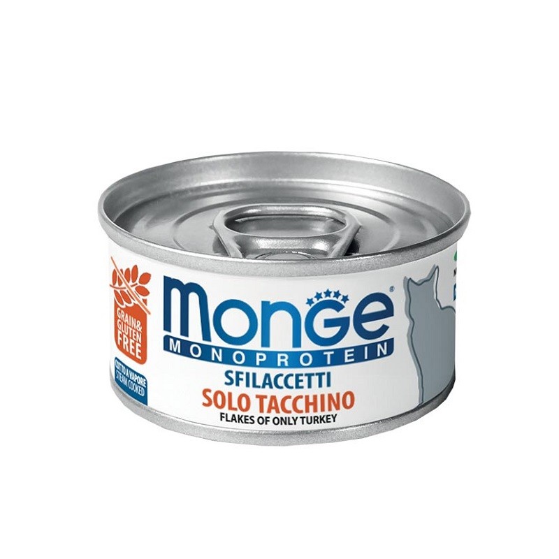 Marzo 19, 2025MONGE SFILACCETTI MONOPROTEICO CAT TACCHINO GR 80 6 lattine