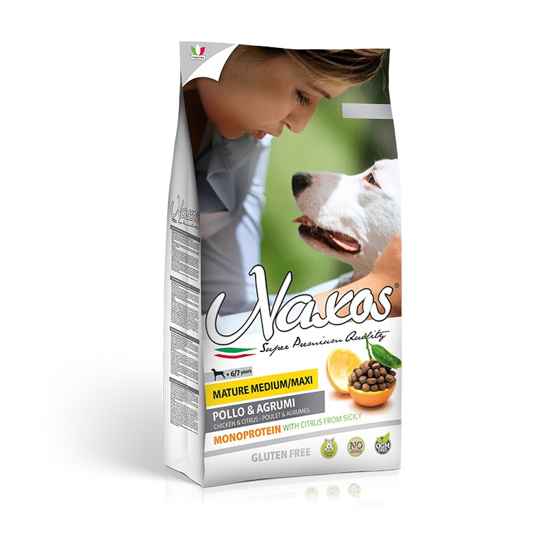 Naxos Mature Medium e Maxi – Pollo e agrumi è indicato per il mantenimento dei cani adulti di taglia media e grande in quanto tiene conto delle particolari esigenze fisiologiche e nutrizionali che caratterizzano gli animali di questa taglia ed età.