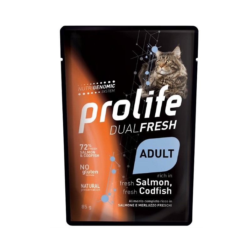 Gennaio 13, 2025PROLIFE GATTO DUALFRESH ADULT SALMONE E MERLUZZO BUSTA GR 85 X 12