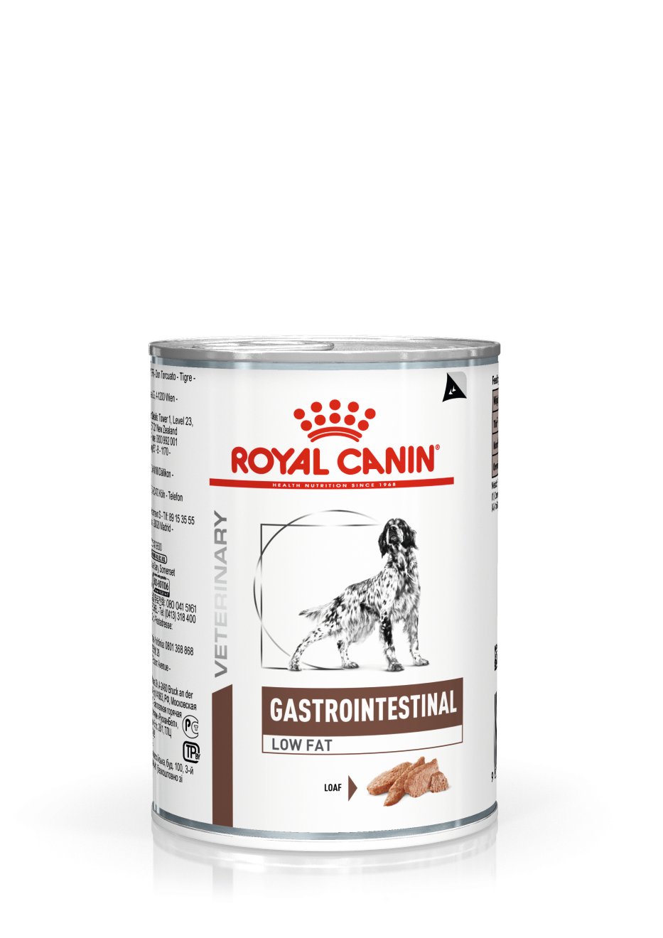 Alimento dietetico completo per cani adulti. ROYAL CANIN® Gastrointestinal Low Fat morbido patè è un alimento dietetico completo per cani, indicato per la regolazione del metabolismo dei lipidi in caso di iperlipidemia. Questo alimento contiene una ridotta concentrazione di grassi ed un’alta concentrazione di acidi grassi essenziali. Raccomandazioni: Si raccomanda di chiedere il parere di un veterinario prima dell’uso oppure prima di estendere il periodo di impiego. Utilizzare inizialmente Gastrointestinal Low Fat morbido patè fino a 2 mesi in caso di iperlipidemia.