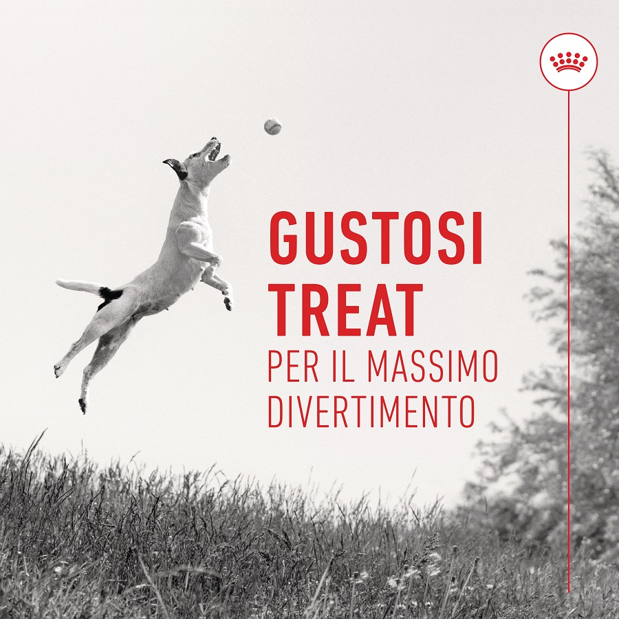 I Treat masticabili ROYAL CANINĀ® Training Treats sono appositamente formulati con una miscela di ingredienti scientificamente provati per premiare senza compromessi, supportando il benessere del tuo cane.