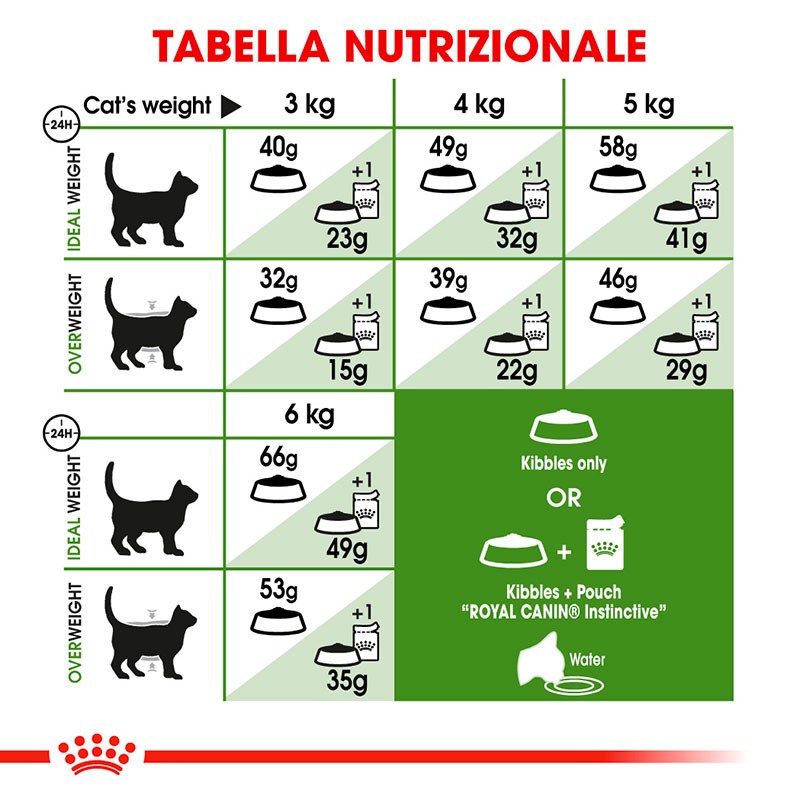 | 6 kg | 66 g (49g + 1 bustina) | 53 g (35 g + 1 bustina) |