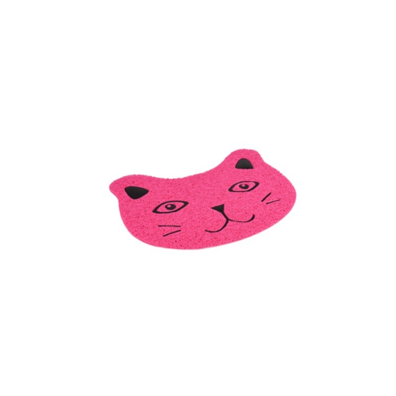 Tappetino per cassetta igienica a forma di faccia di gatto rosa.